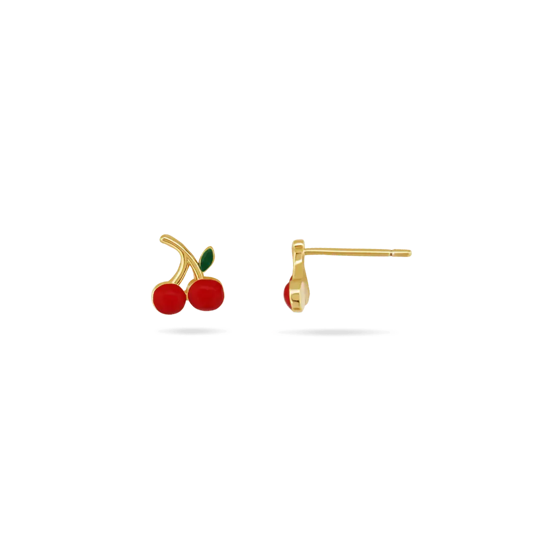 Sweet and cheerful little stud earrings shaped like bright cherries — the perfect playful accessory for kids.