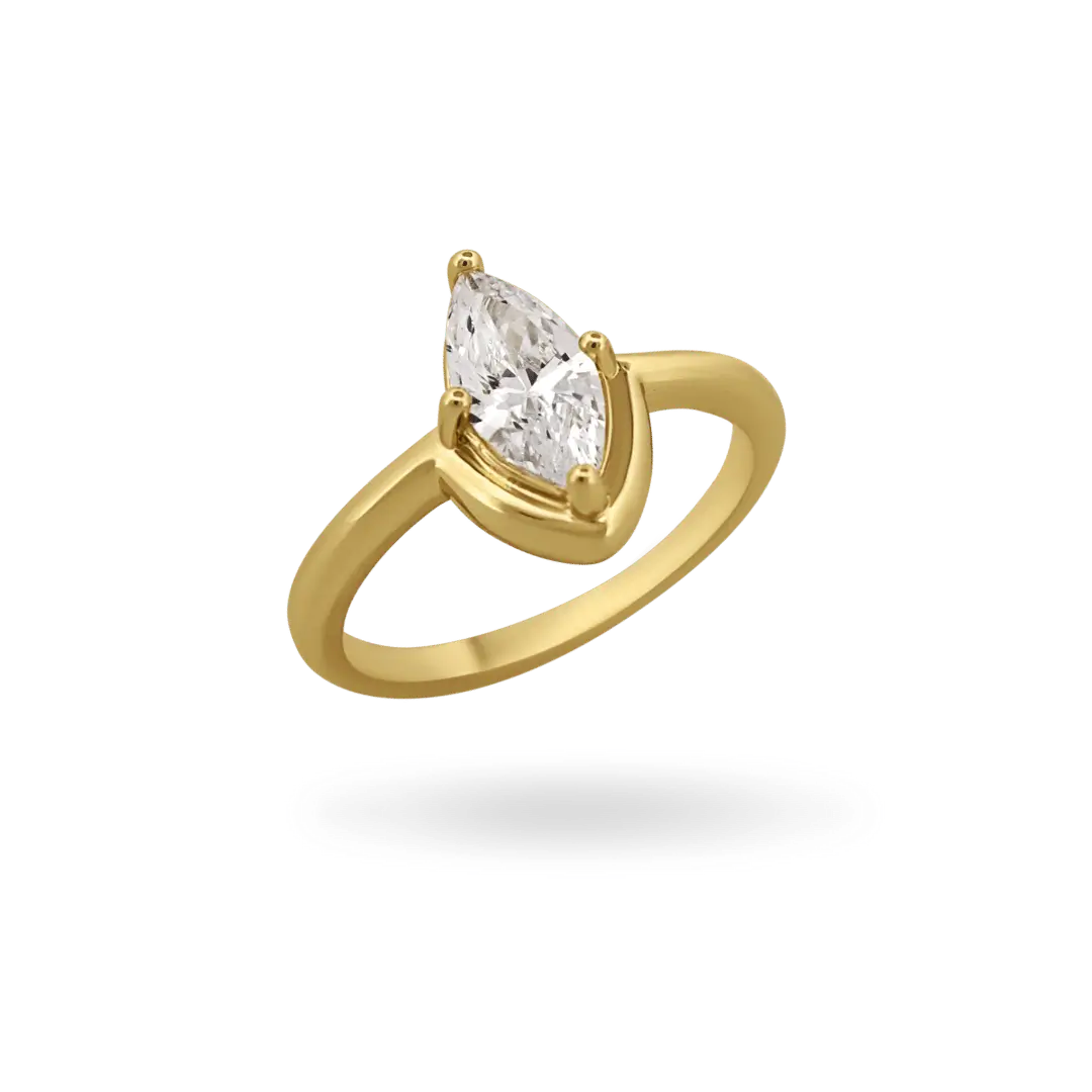 The Suzy Marquise Floater Ring — a single band with a sharp, floating marquise stone that catches light from every angle. Minimal, sleek, and a little bold. The kind of ring you forget you’re wearing… until someone stops you to ask about it.