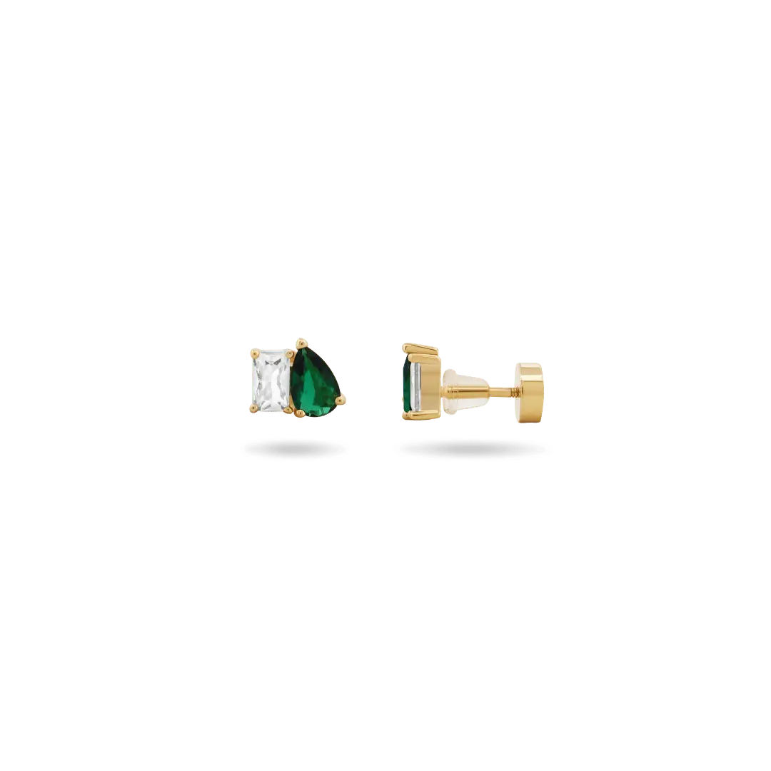 A study in timeless elegance and modern allure. The Amor Sui Stud Earrings feature vibrant emerald-hued stones cradled in brilliant white cubic zirconia, capturing light from every angle with irresistible sparkle. Designed for both everyday luxury and special-moment style, these studs elevate any look with a refined yet radiant shimmer.