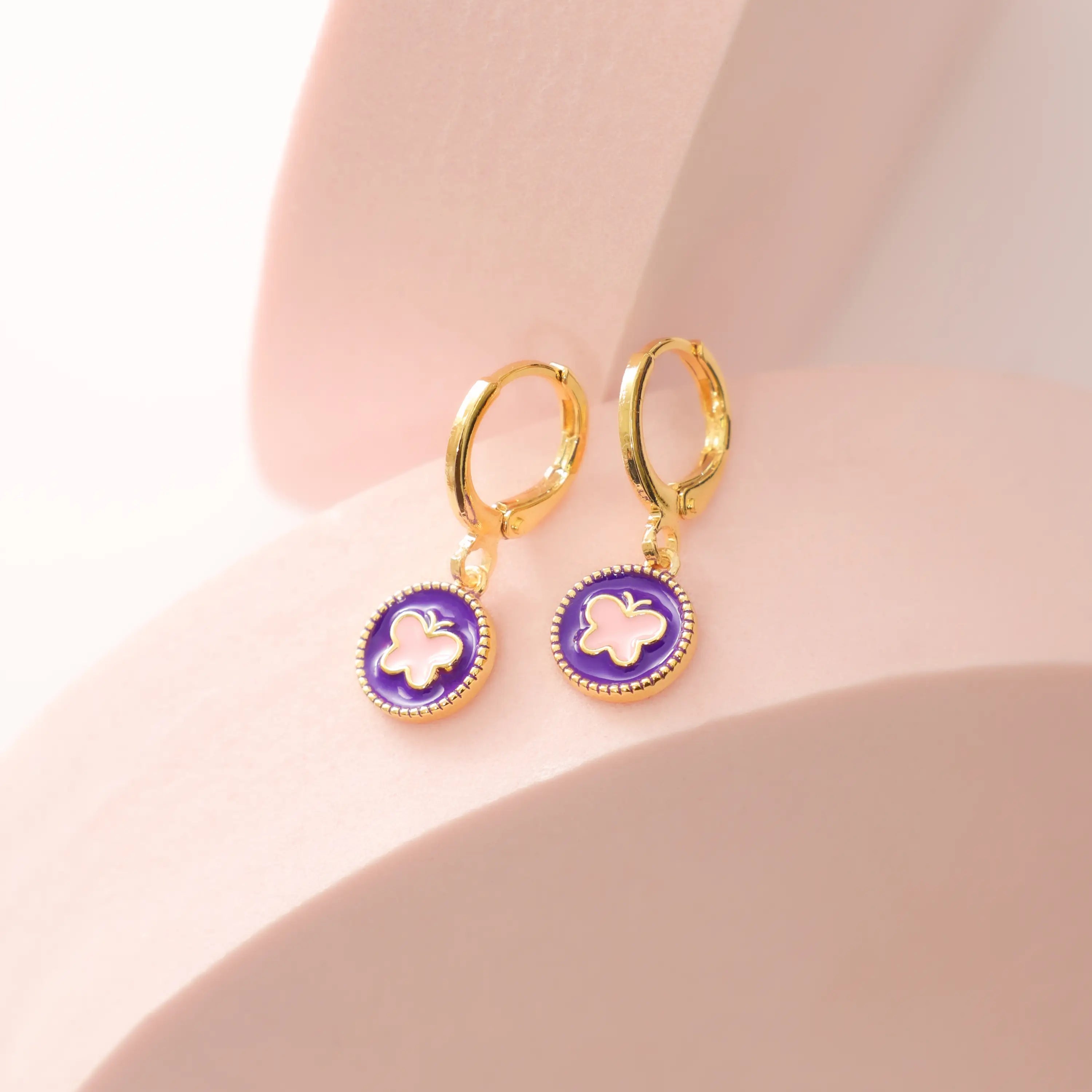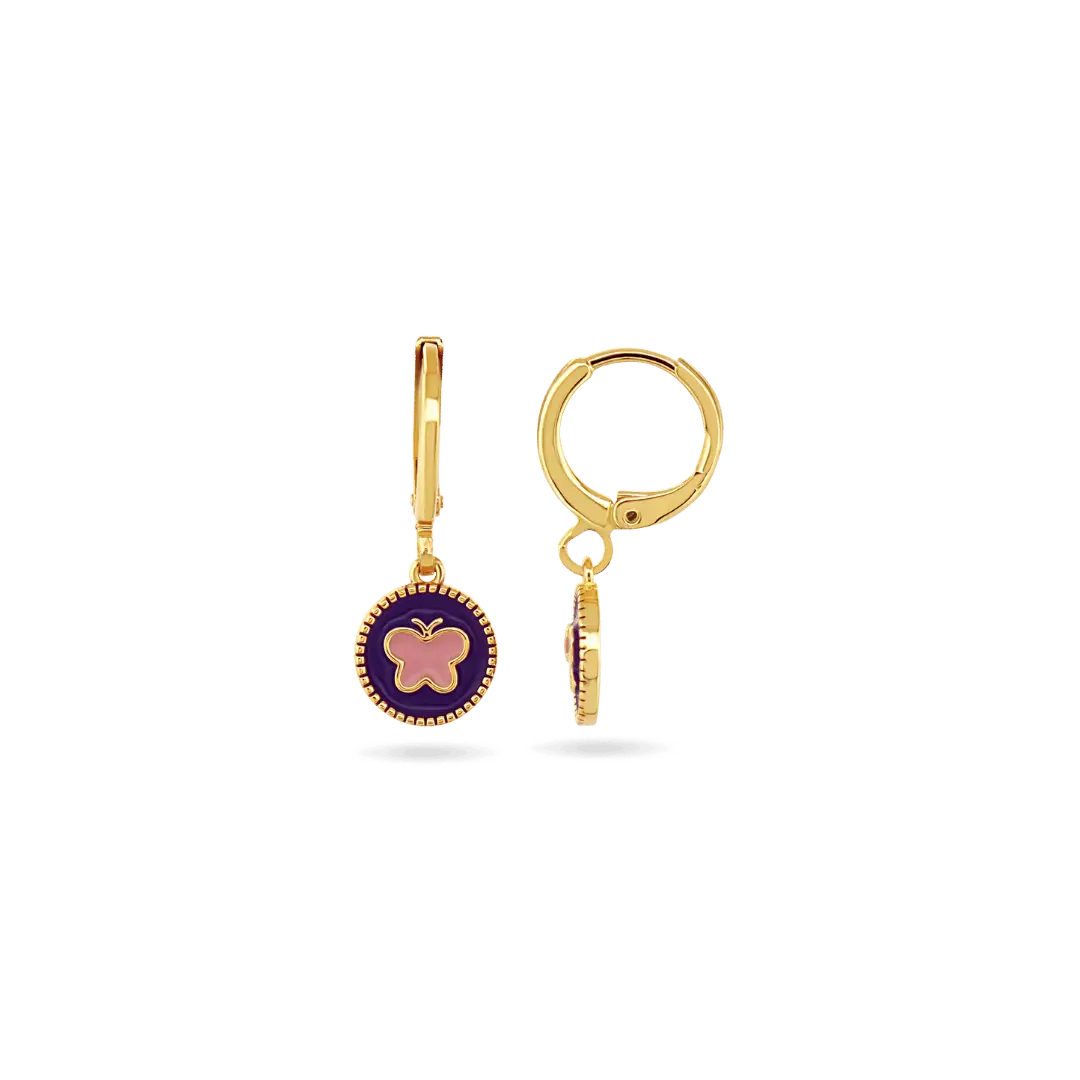 Pink and purple enamel butterflies add the sweetest little flutter to these everyday huggies. Lightweight, colorful, and so playful — made for girls who love a butterfly moment.
