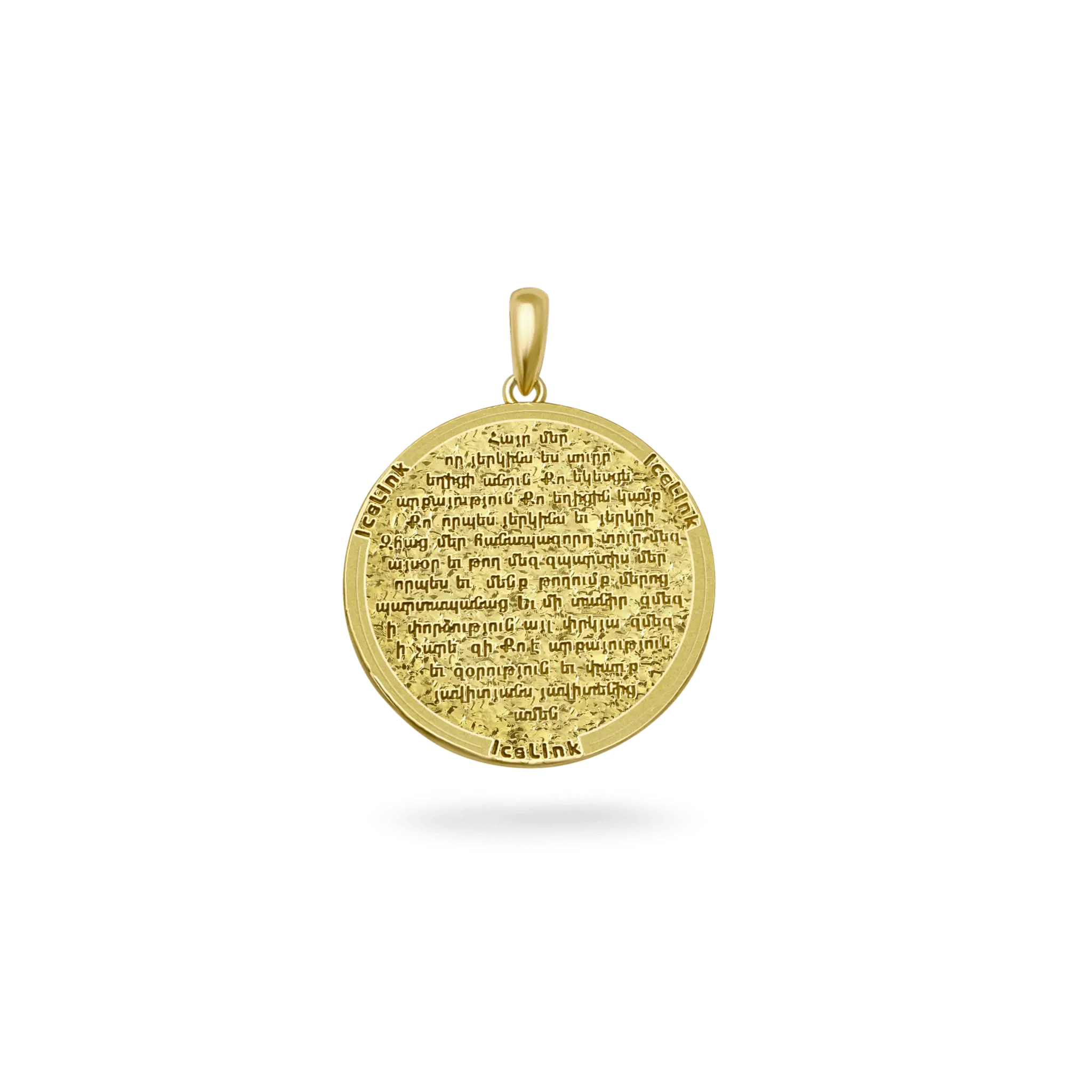 Hang a beautiful reminder of your all-important faith prominently near your heart. Fashioned of solid 14K Gold, this Hayr Mer prayer pendant is polished to a brilliant finish and ready for your favorite chain (sold separately).